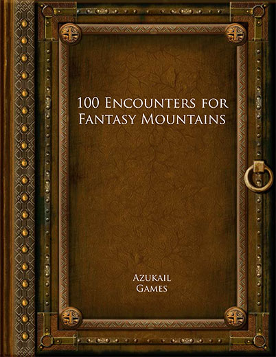 Mountains can be dangerous places to travel through and 100 Encounters for Fantasy Mountains has 100 different encounters for such locations. These can be used to enliven a journey or as a source of potential adventure hooks. Some are potentially dangerous, some are potentially useful and some are weird.
