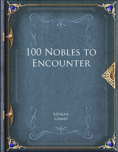 Nobles can be a common sight in fantasy medieval settings. 100 Nobles to Encounter has 100 nobles listed, with their names and some other details. They can be a source of adventure hooks, foes or simply background colour for the local court.