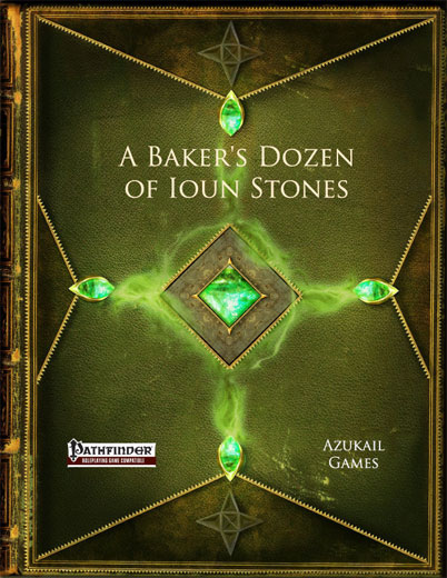 This, our first supplement for the Pathfinder Roleplaying Game, lists a baker’s dozen, or thirteen, new ioun stones, including cracked and flawed varieties for each stone.