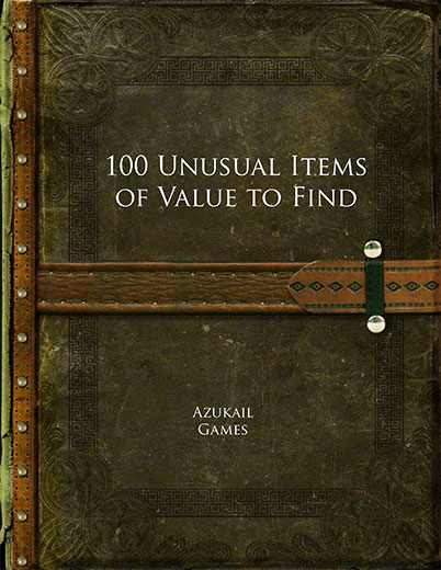 This supplement has 100 more unusual items of value for characters to find. Some may be difficult to transport whilst some are forms of transport. Not every item is suitable to every locale and disposing of some may be an adventure in and of itself.