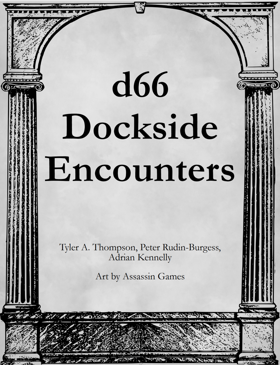 36 encounters a Party might find dockside or otherwise in and around port. Strange tentacles, harboring disputes, customs officials with a chip on their shoulder, shady crew recruiters, and much more.