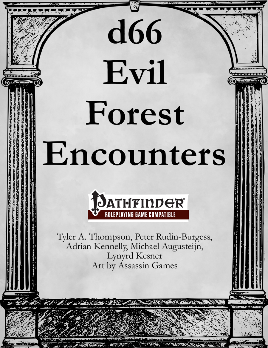 36 encounters on might find in an evil, haunted, or otherwise corrupted forest to interrupt their travels or cause existential dread. Trees that consume those that pass, flowers that host dangerous insects, thorns that crave blood, emptied campsites, and much more.