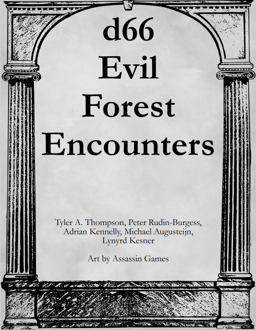 36 encounters one might find in an evil, haunted, or otherwise corrupted forest to interrupt their travels or cause existential dread. Trees that consume those that pass, flowers that host dangerous insects, thorns that crave blood, emptied campsites, and much more.
