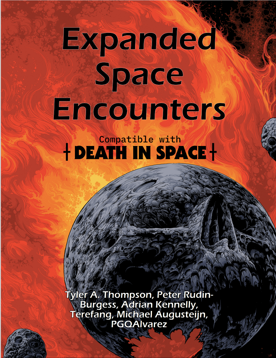 This publication includes 14 new encounters for all ten types of Space Encounters found in the core Death in Space book, turning the d6 tables into d20 tables. Meaning: