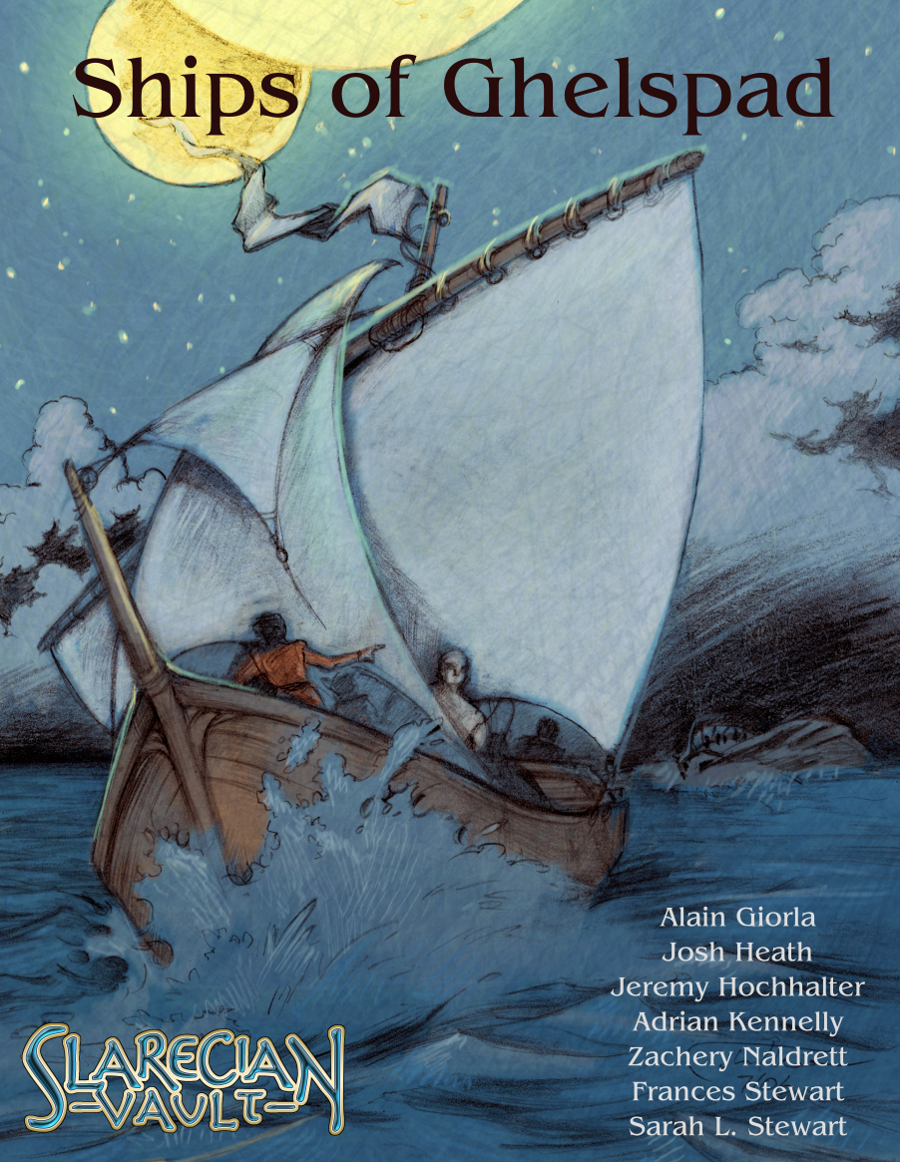 Oceans cover the majority of the surface of Scarn, which provides plenty of opportunities for maritime encounters. This supplements lists 100 ships from the seas, rivers, and lakes of Ghelspad, ranging from small riverboats to large three-masted ships, merchant barges or pirate crews, and an assortment of smugglers, soldiers, adventurers, and other heroes and villains.